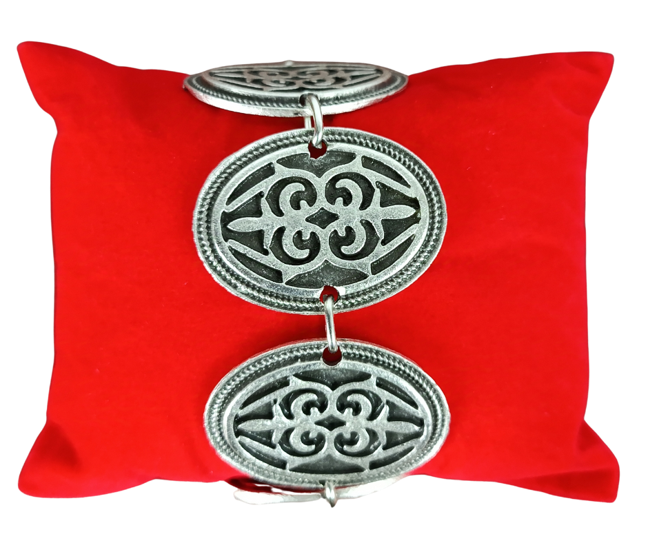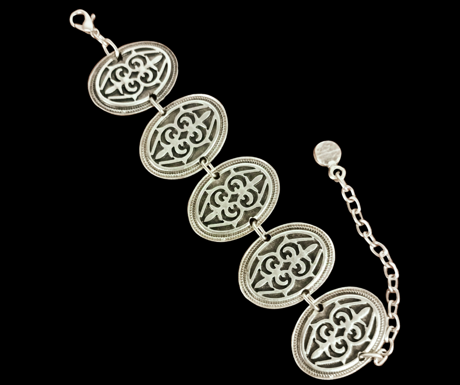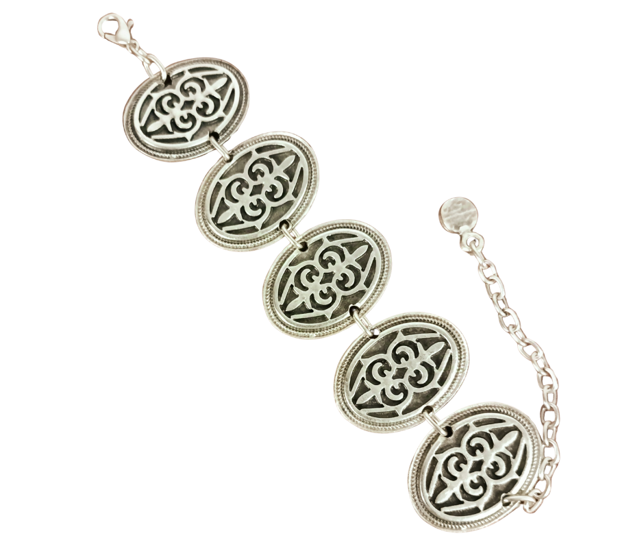 Descoperă eleganța cu această brățară din zamac argintat antichizat, o bijuterie care adaugă un strop de rafinament și farmec fiecărei zile. Designul vintage și detaliile delicate transformă această brățară într-un accesoriu unic, perfect pentru a sublinia stilul tău personal. Această brățară nu doar completează orice ținută, ci adaugă o poveste de stil și eleganță fiecărei apariții. Ideală pentru ocazii speciale sau pentru a adăuga un plus de rafinament ținutelor zilnice, această bijuterie este realizată pentru a rezista în timp, menținându-și strălucirea și farmecul original. Redescoperă magia bijuteriilor clasice și bucură-te de frumusețea oferită de această brățară din zamac antichizat.