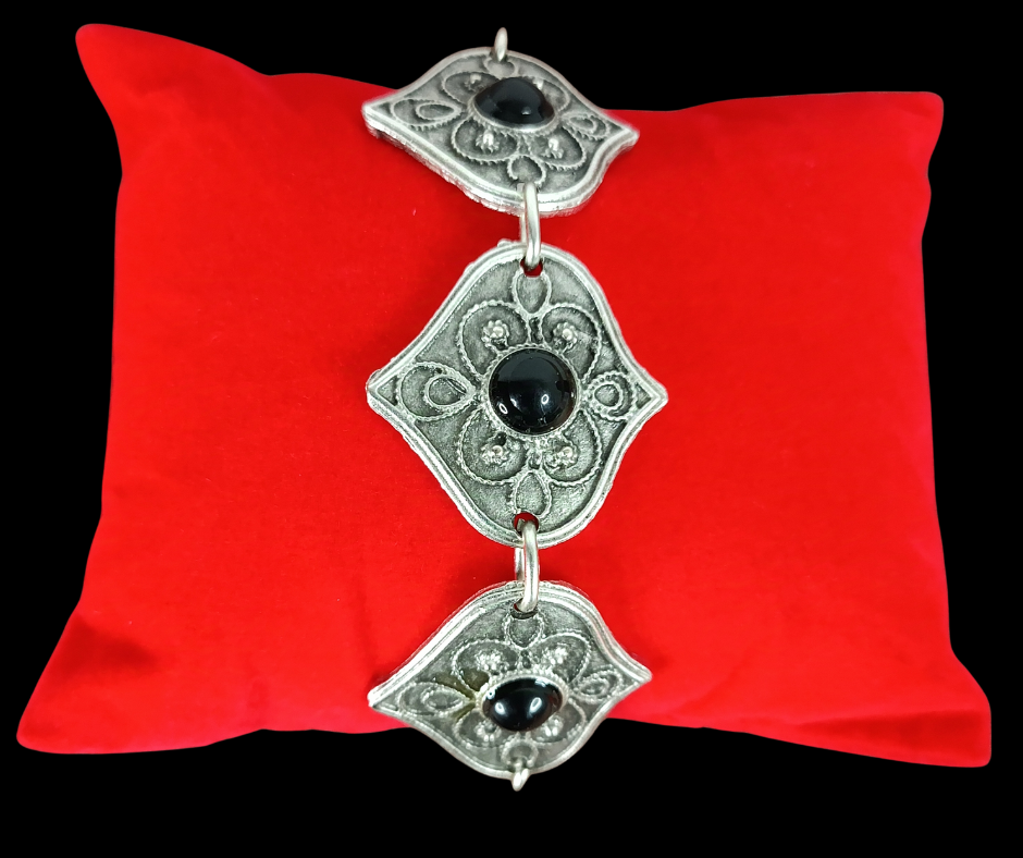 Explorează frumusețea clasică cu această brățară din zamac argintat antichizat, o bijuterie ce combină eleganța și rafinamentul într-un design vintage unic. Detaliile antichizate ale zamacului oferă un aer de mister și distincție, perfect pentru a-ți accentua stilul personal. Această brățară nu doar completează orice ținută, ci adaugă o notă de istorie și eleganță fiecărui moment. Ideală pentru ocazii speciale sau pentru a adăuga un strop de eleganță în fiecare zi, această bijuterie este realizată pentru a rezista în timp, menținându-și strălucirea și farmecul original. Descoperă magia unei bijuterii clasice și bucură-te de frumusețea atemporală oferită de această brățară din zamac antichizat.