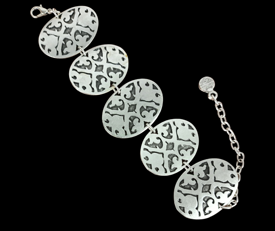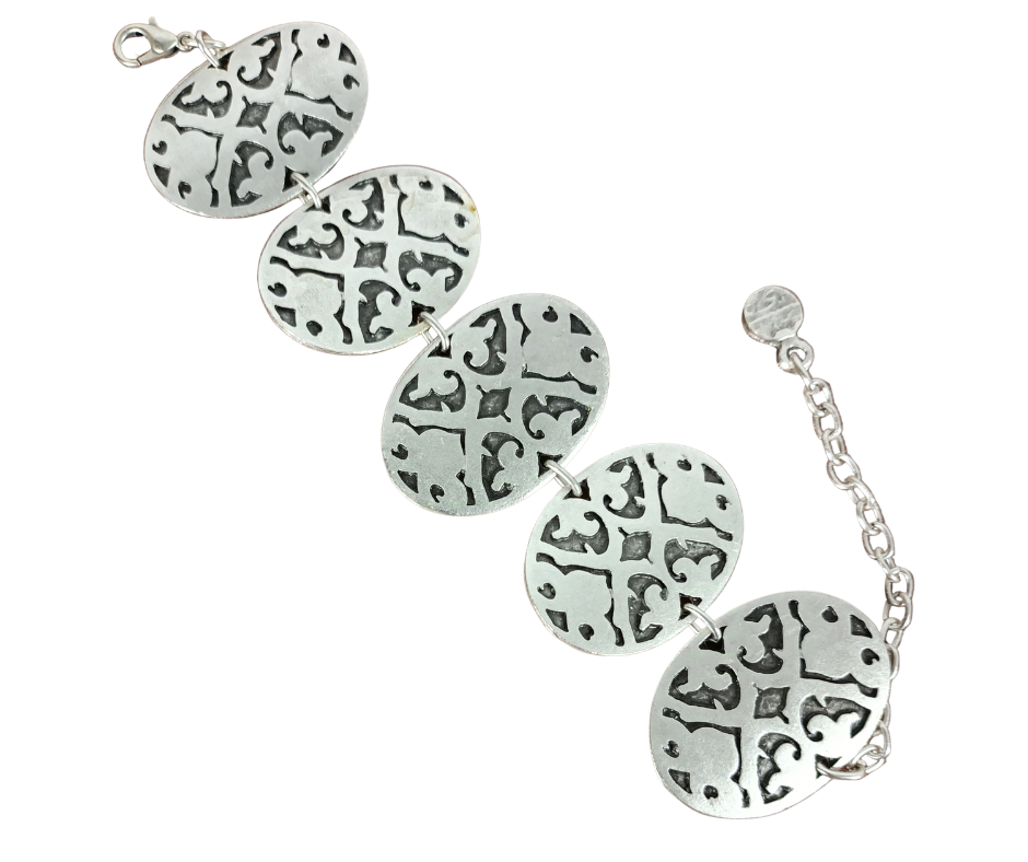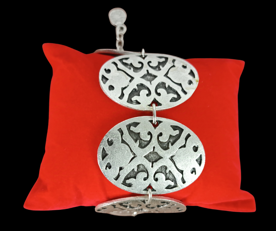 Îmbrățișează stilul clasic cu această brățară din zamac argintat antichizat, proiectată pentru a adăuga un strop de eleganță și rafinament fiecărei ținute. Detaliile vintage și aspectul antichizat al zamacului conferă acestei bijuterii un aer de mister și noblețe, perfect pentru a-ți sublinia stilul personal. Această brățară nu este doar un accesoriu, ci o poveste de eleganță și distincție, menită să te facă să te simți specială și admirată. Ideală pentru ocazii speciale sau pentru a adăuga un plus de rafinament ținutelor zilnice, această bijuterie este concepută pentru a rezista trecerii timpului, păstrându-și frumusețea și strălucirea de-a lungul anilor. Bucură-te de magia și misterul acestei brățări din zamac antichizat și adaugă un strop de frumusețe atemporală colecției tale de bijuterii.