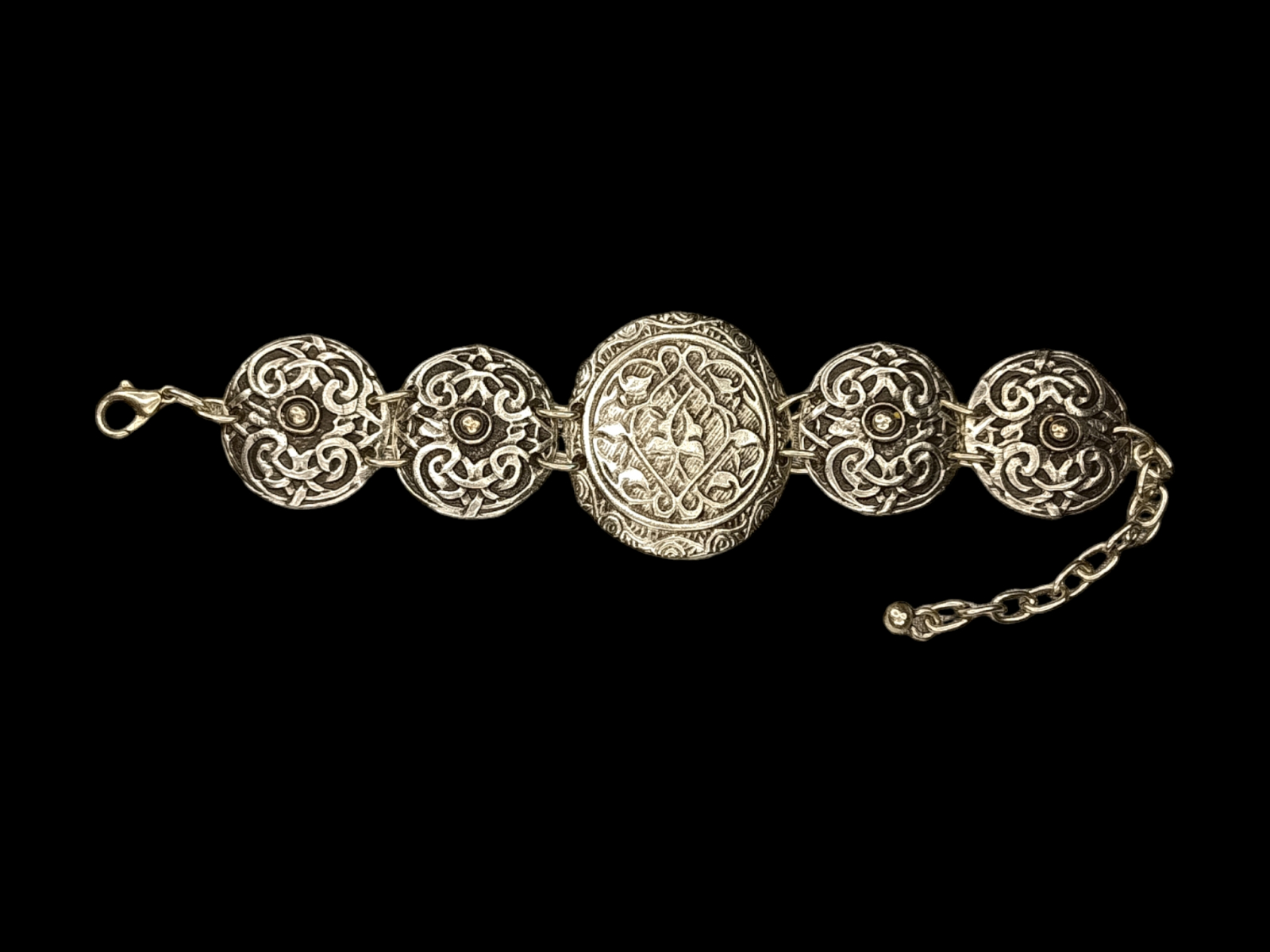 Îmbrățișează stilul clasic cu această brățară din zamac argintat antichizat, proiectată pentru a adăuga un strop de eleganță și rafinament fiecărei ținute. Detaliile vintage și aspectul antichizat al zamacului conferă acestei bijuterii un aer de mister și noblețe, perfect pentru a-ți sublinia stilul personal. Această brățară nu este doar un accesoriu, ci o poveste de eleganță și distincție, menită să te facă să te simți specială și admirată. Ideală pentru ocazii speciale sau pentru a adăuga un plus de rafinament ținutelor zilnice, această bijuterie este concepută pentru a rezista trecerii timpului, păstrându-și frumusețea și strălucirea de-a lungul anilor. Bucură-te de magia și misterul acestei brățări din zamac antichizat și adaugă un strop de frumusețe atemporală colecției tale de bijuterii.