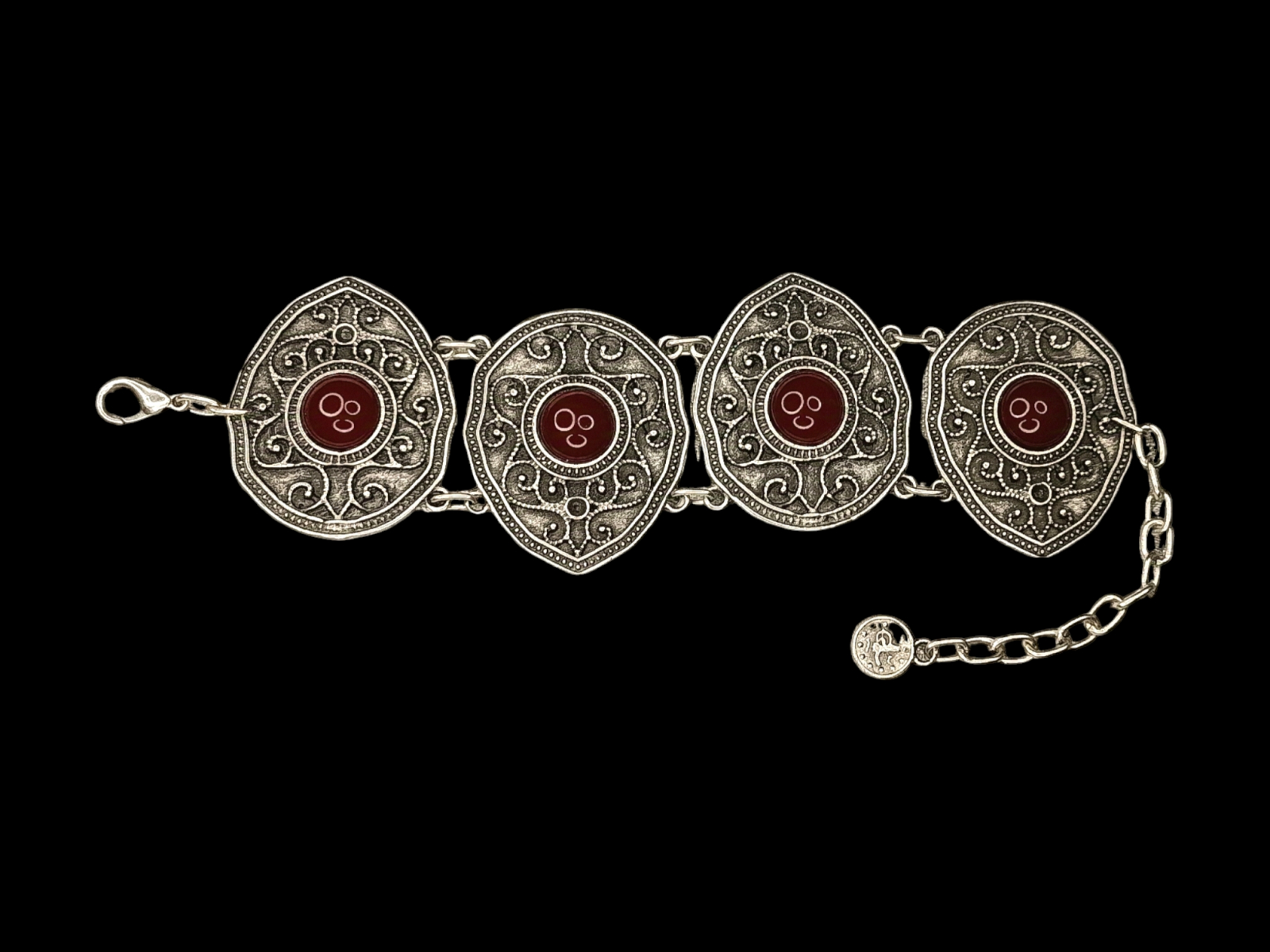 Explorează farmecul clasic cu această brățară din zamac argintat antichizat, o bijuterie ce combină eleganța și rafinamentul într-un design vintage unic. Detaliile antichizate ale zamacului oferă un aer de mister și distincție, perfect pentru a-ți accentua stilul personal. Această brățară nu doar completează orice ținută, ci adaugă o notă de istorie și eleganță fiecărui moment. Ideală pentru ocazii speciale sau pentru a adăuga un strop de eleganță în fiecare zi, această bijuterie este realizată pentru a rezista în timp, menținându-și strălucirea și farmecul original. Descoperă magia unei bijuterii clasice și bucură-te de frumusețea oferită de această brățară din zamac antichizat.