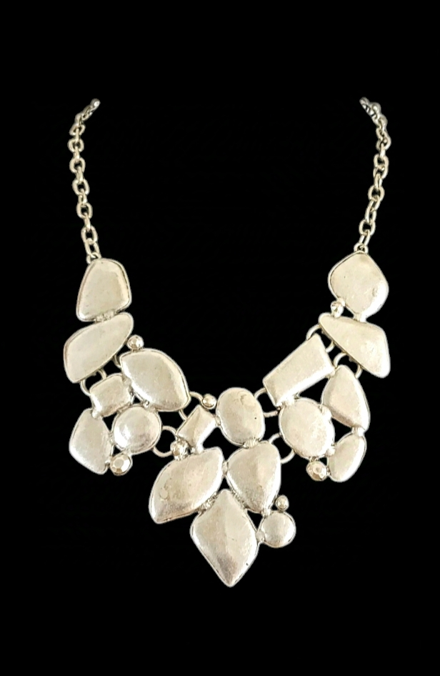 Acest colier superb din zamac este o adevărată operă de artă, creat pentru a adăuga un plus de eleganță și rafinament oricărei ținute. Designul său unic, compus din multiple forme geometrice neregulate, conferă o notă de originalitate și modernitate, făcându-l o piesă statement care atrage toate privirile. Beneficiile purtării acestui colier Purtarea acestui colier aduce multiple beneficii: